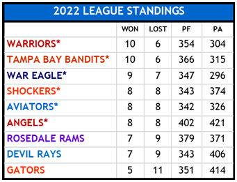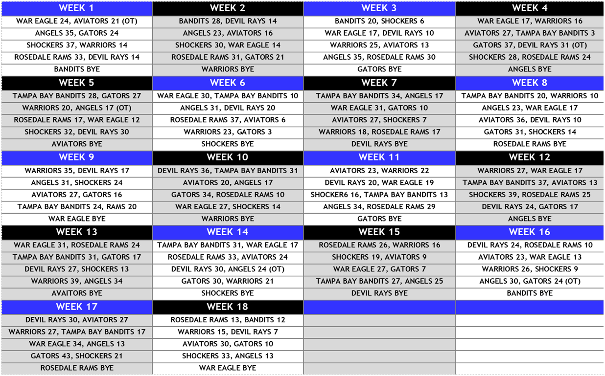 Text Box: Standings and Results